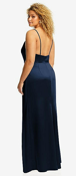 Draped Cowl-Back Princess Line Dress with Front Slit in midnight navy