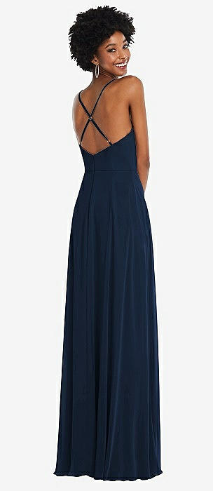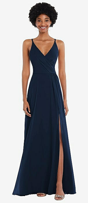 Faux Wrap Criss Cross Back Maxi Dress with Adjustable Straps in midnight navy