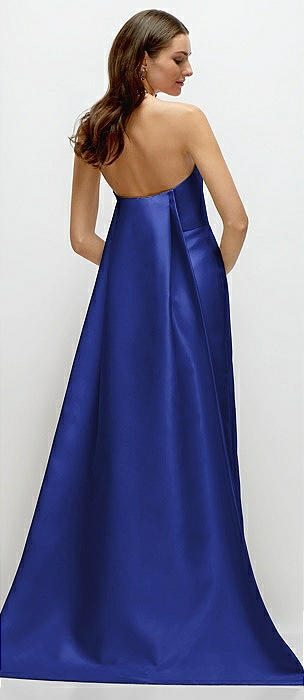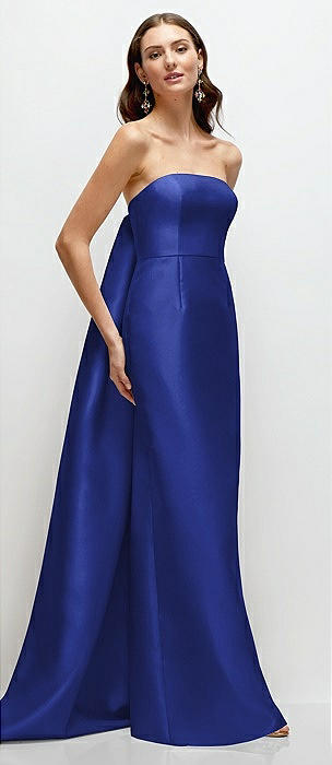 Strapless Satin Column Dress with Removeable Watteau Train in cobalt blue