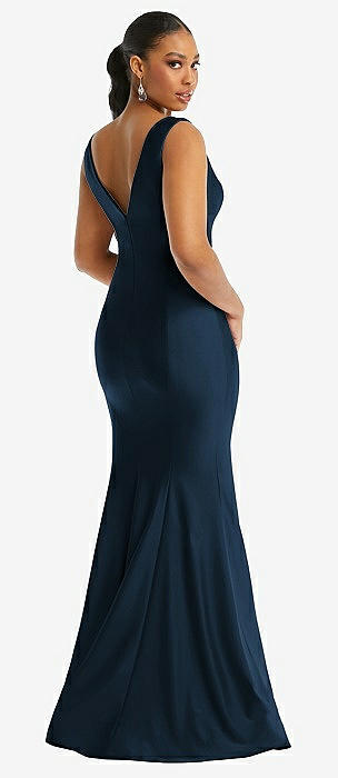 Shirred Shoulder Stretch Satin Mermaid Dress with Slight Train in midnight navy