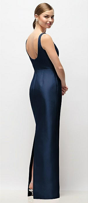 Scoop Neck Satin Column Maxi Dress in midnight navy