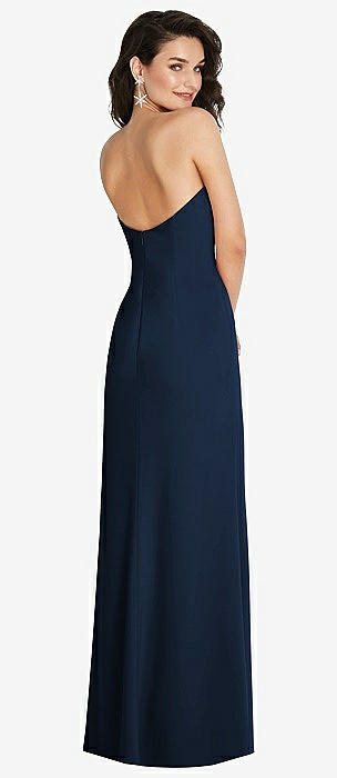 Strapless Scoop Back Maxi Dress with Front Slit in midnight navy