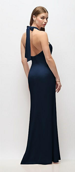 Tie Halter Open Back Trumpet Gown in midnight navy