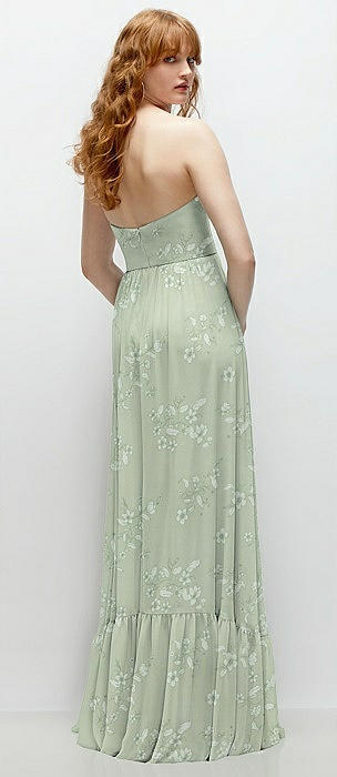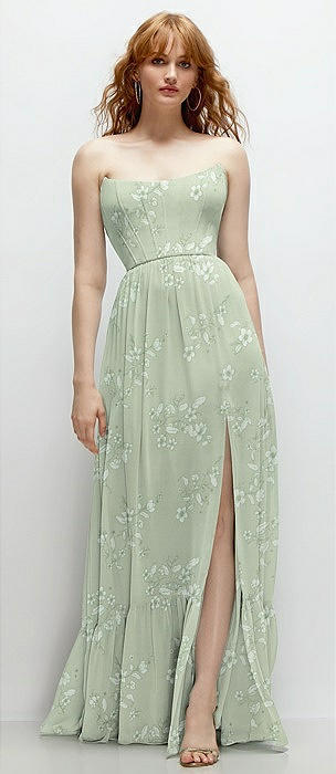 Strapless Cat-Eye Corset Maxi Dress with Ruffle Hem A-Line Skirt in vintage primrose sage