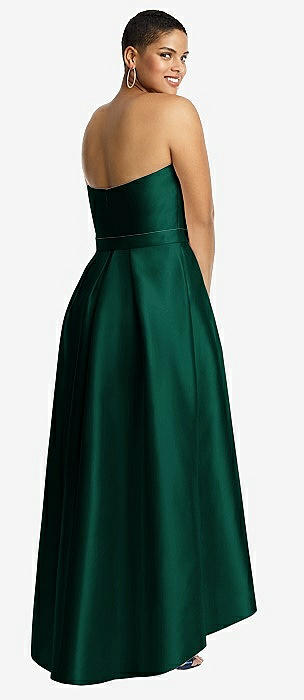 Strapless Deep Ruffle Hem Satin High Low Dress with Pockets in evergreen