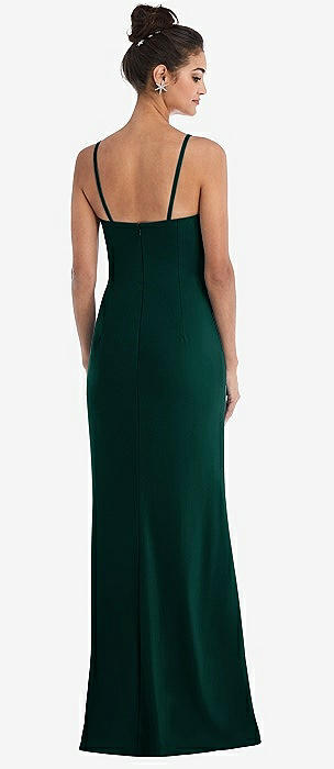 Notch Crepe Trumpet Gown with Front Slit in evergreen