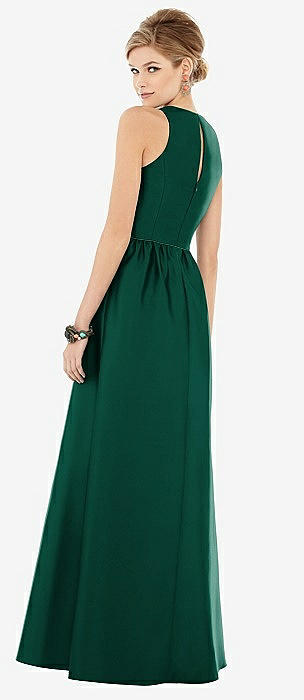 Sleeveless Keyhole Back Satin Maxi Dress in hunter green