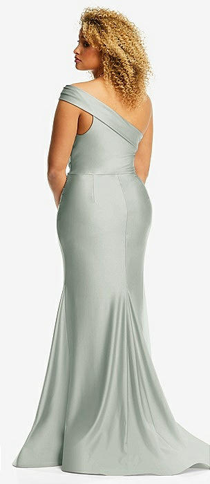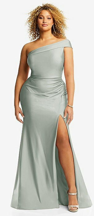 One-Shoulder Bias-Cuff Stretch Satin Mermaid Dress with Slight Train in willow green