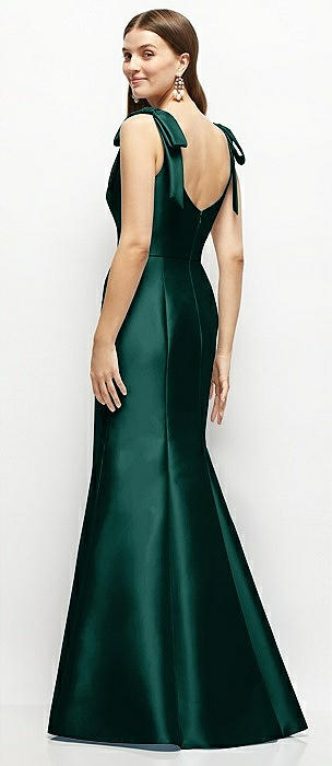 Satin Fit and Flare Maxi Dress with Shoulder Bows in evergreen