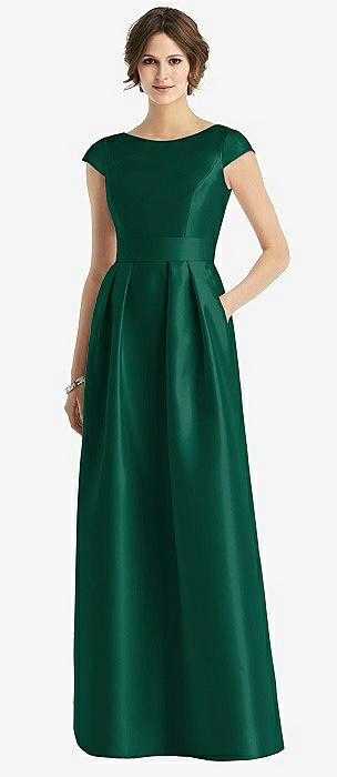 Cap Sleeve Pleated Cocktail Dress with Pockets in hunter green