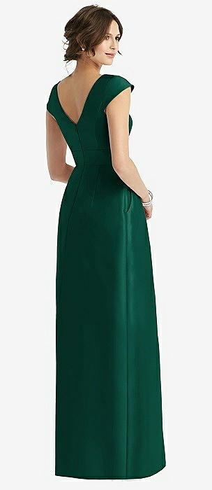 Cap Sleeve Open-Back Trumpet Gown with Front Slit in evergreen