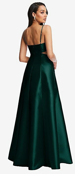 Open Neckline Cutout Satin Twill A-Line Gown with Pockets in evergreen