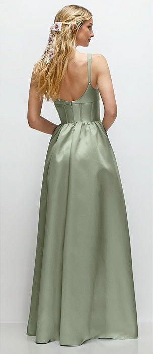 Scoop Neck Inset Corset Satin Maxi Dress with Pockets in sage