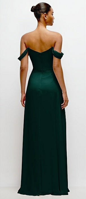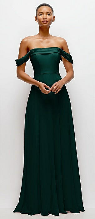 Off-the-Shoulder Draped Neckline Maxi Dress in evergreen
