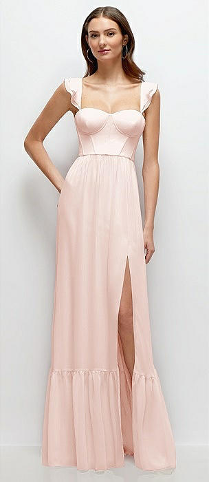 Ruffle Strap Chiffon Bustier Maxi Dress with Ruffle Hem A-Line Skirt in blush