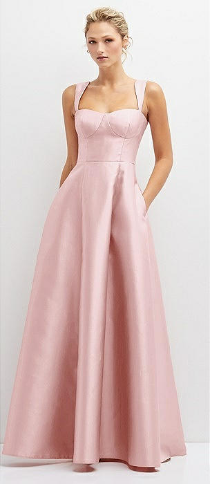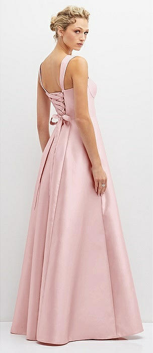 Lace-Up Back Bustier Satin Dress with Full Skirt and Pockets in ballet pink
