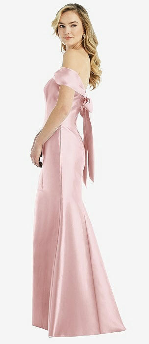 Off-the-Shoulder Bow-Back Satin Trumpet Gown in ballet pink