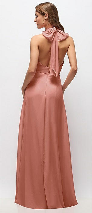 Band Collar Halter Open Back Fluid Satin Maxi Dress with Self-Tie Bow in ballet pink