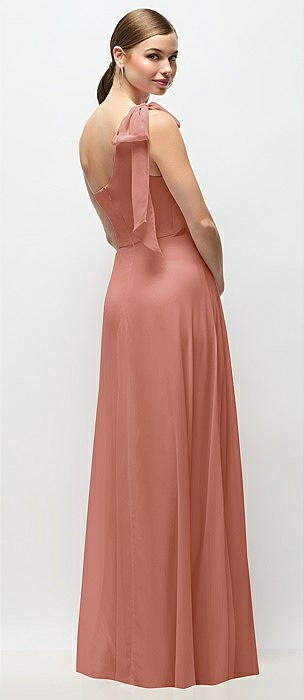 One-Shoulder Chiffon Maxi Dress with Shirred Front Slit in desert rose