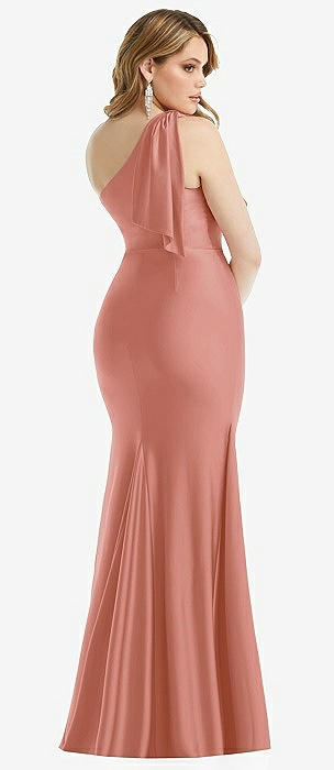 Cascading Bow One-Shoulder Stretch Satin Mermaid Dress with Slight Train in desert rose