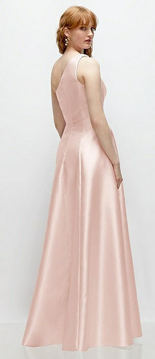 Bow One-Shoulder Fluid Satin Maxi Dress with Full Skirt in ballet pink