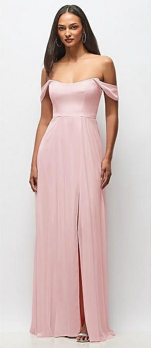 Off-the-Shoulder Cuff Trumpet Gown with Front Slit in blush