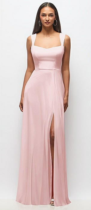 Square-Neck Satin Maxi Dress with Full Skirt in ballet pink