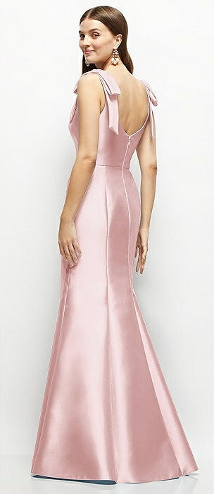 Satin Fit and Flare Maxi Dress with Shoulder Bows in ballet pink