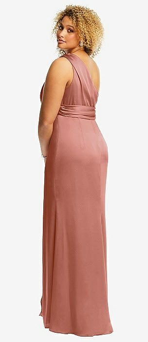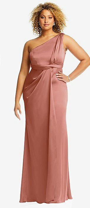 One-Shoulder Draped Twist Empire Waist Trumpet Gown in desert rose