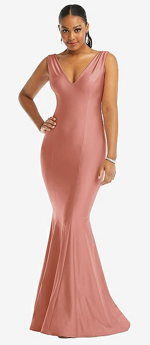 Shirred Shoulder Stretch Satin Mermaid Dress with Slight Train in desert rose