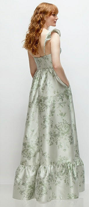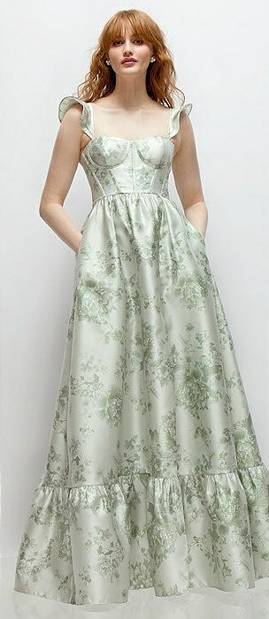 Floral Satin Corset Maxi Dress with Ruffle Straps & Skirt in sage cottage rose