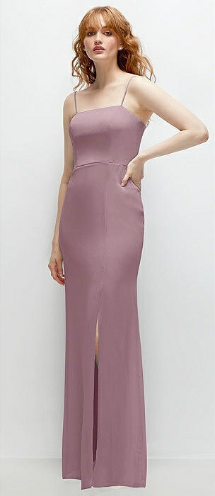 Tie-Back Cutout Trumpet Gown with Front Slit in dusty rose