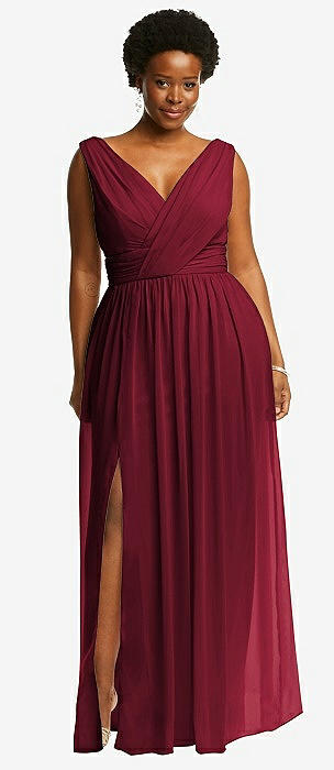 Sleeveless Draped Chiffon Maxi Dress with Front Slit in burgundy