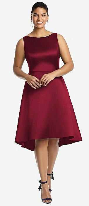 Bateau Neck Satin High Low Cocktail Dress in burgundy