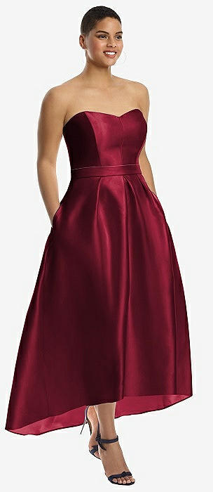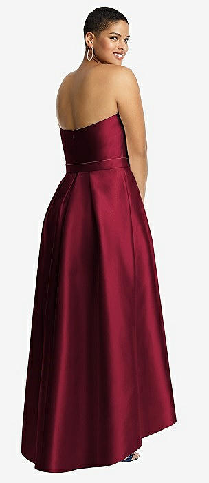 Strapless Satin High Low Dress with Pockets in burgundy