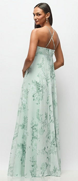 Empire Waist Floral Chiffon Halter Maxi Dress with Convertible Spaghetti Straps in mint green floral