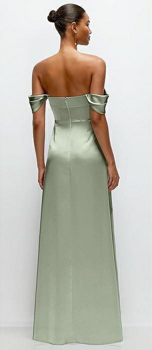Off-the-Shoulder Corset Stretch Satin Mermaid Dress with Slight Train in olive green