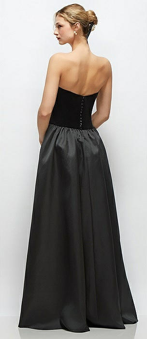 Strapless Black Velvet and Satin Drop Waist Gown with Full Skirt in black
