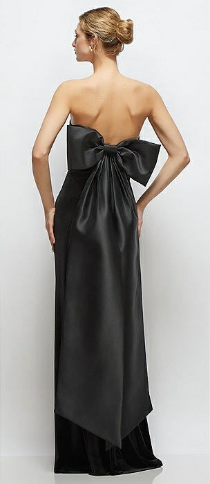 Black Velvet Maxi Dress with Strapless Satin Cuff & Long Bow at Back in black