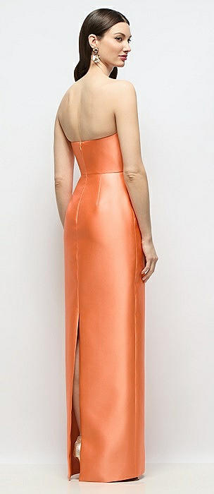 Strapless Satin Column Dress with Back Slit in portofino orange