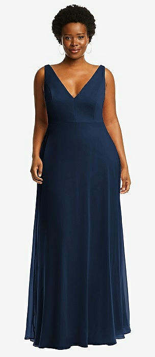 Deep V-Neck Chiffon Maxi Dress in midnight navy