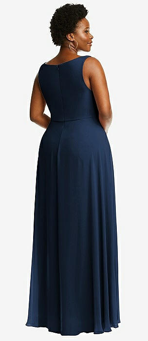 Draped Cowl-Back Princess Line Dress with Front Slit in midnight navy