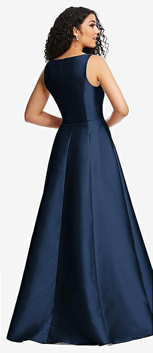 Boned Corset Closed-Back Satin Gown with Full Skirt and Pockets in midnight navy