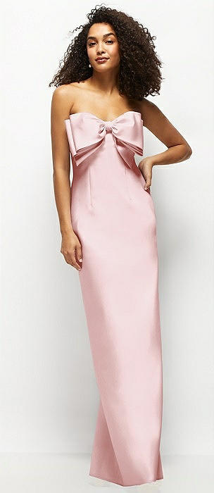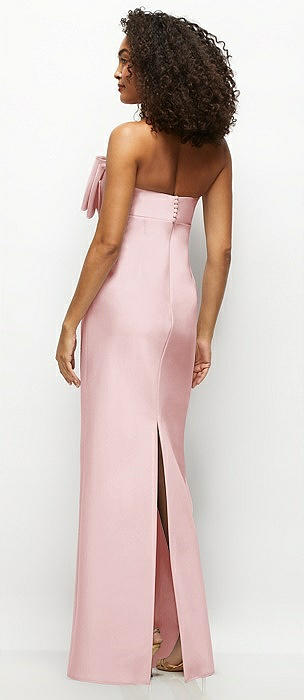 Strapless Satin Column Maxi Dress with Oversized Handcrafted Bow in ballet pink