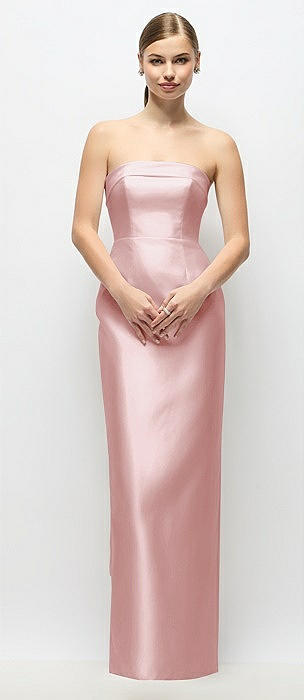 Strapless Cuff Satin Maxi Dress with Column Skirt & Back Bow in ballet pink
