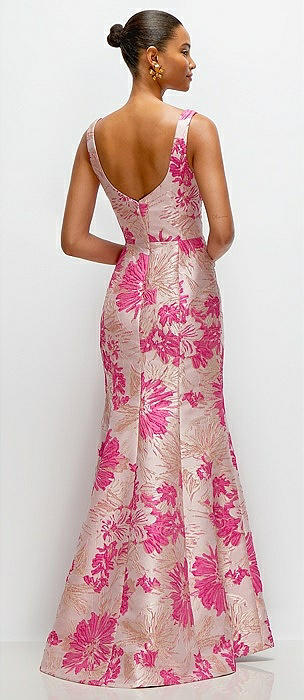 Hibiscus Pink Floral Jacquard Square Neck Maxi Dress with Trumpet Skirt in hibiscus pink multi