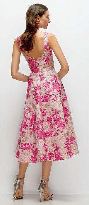 Hibiscus Pink Square Neck Floral Jacquard Midi Dress in hibiscus pink multi