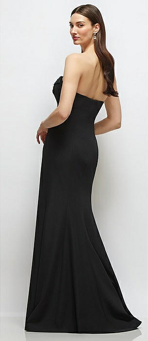 Strapless Black Fit and Flare Dress with Handmade Flower in black