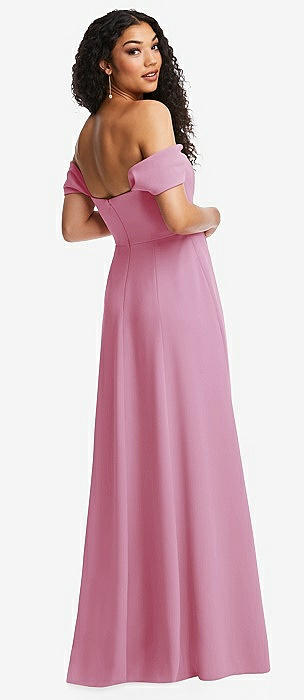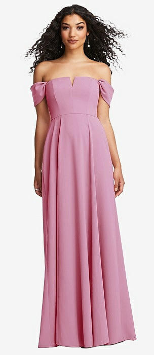 Off-the-Shoulder Pleated Cap Sleeve A-line Maxi Dress in powder pink