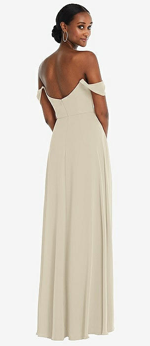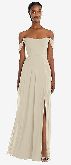 Off-the-Shoulder Basque Neck Maxi Dress with Flounce Sleeves in champagne